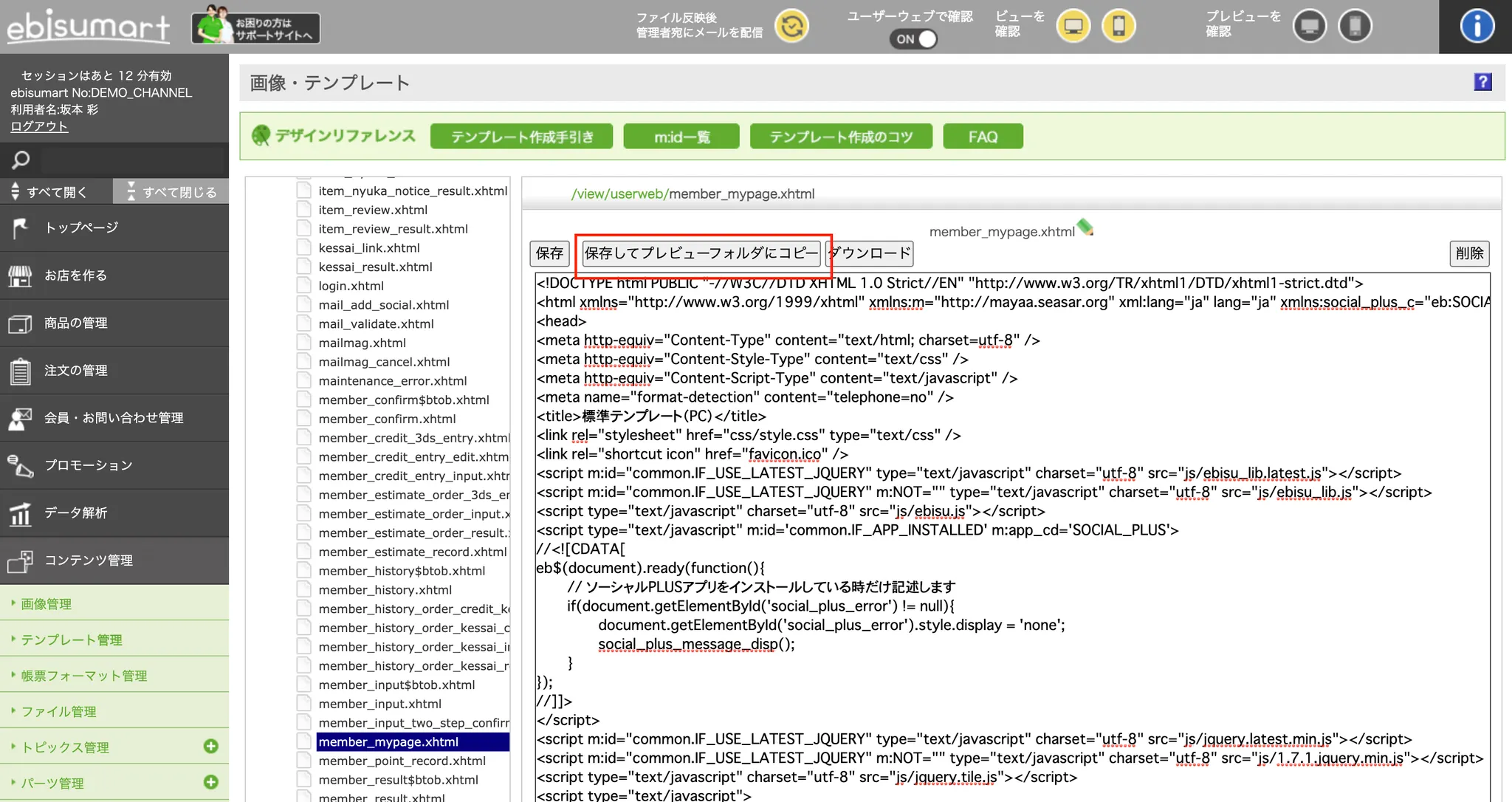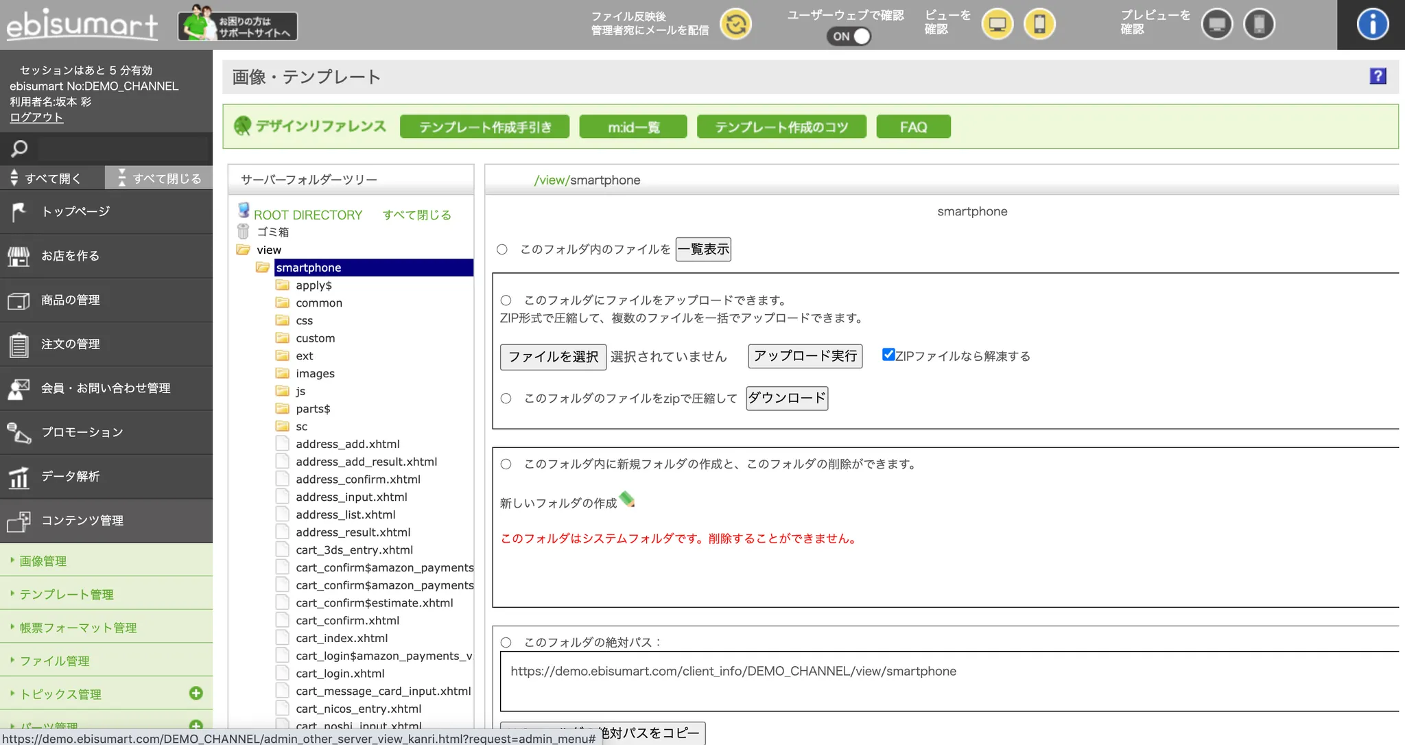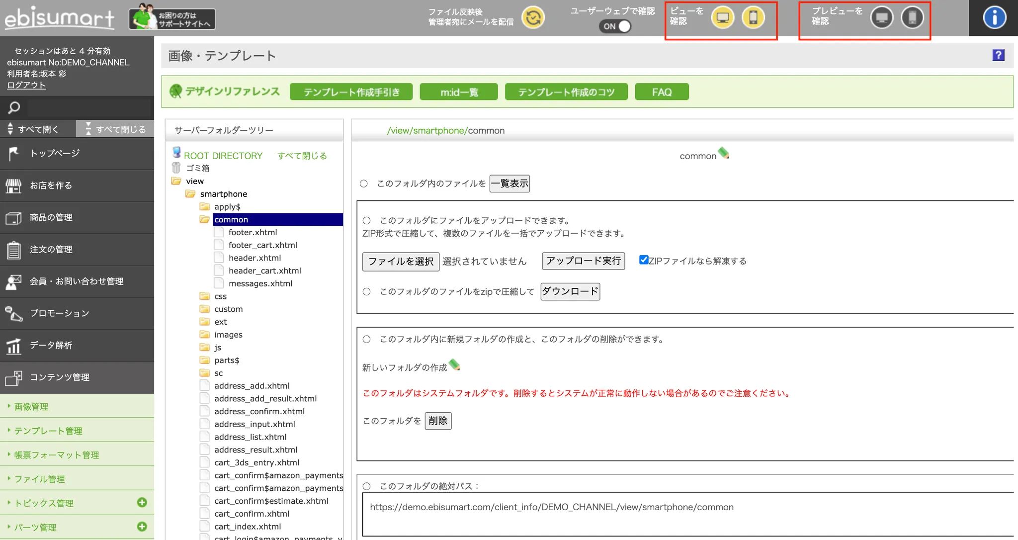 コンテンツ管理 > テンプレート管理> view > smartphoneをクリックして、スマホ画面のテンプレートファイルをカスタマイズしていきます!4. の手順の1.~7.の作業を全く同じようにsmartphoneのフォルダでも行ってください!