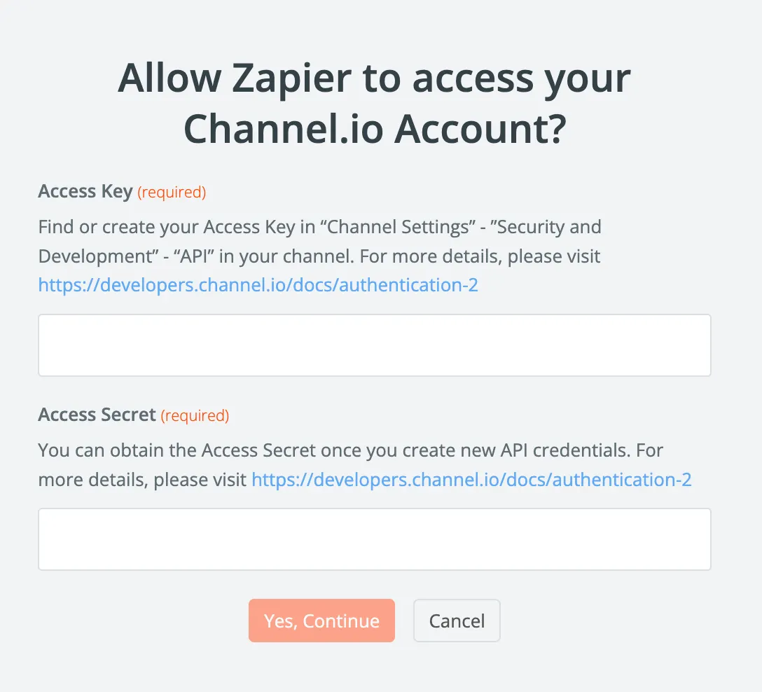 OpenAPIを使用するため、Zapierを使用するためにはチャネルトーク有料プランの契約が必要です。