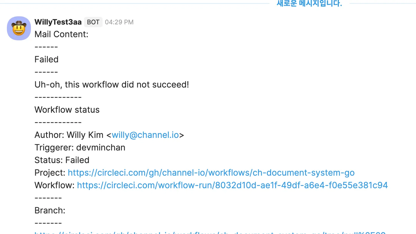 Testを押して、そのチャネルにメール内容が含まれたメッセージがちゃんと届いたか確認します。