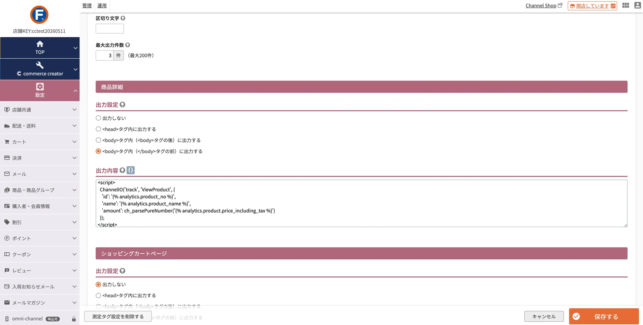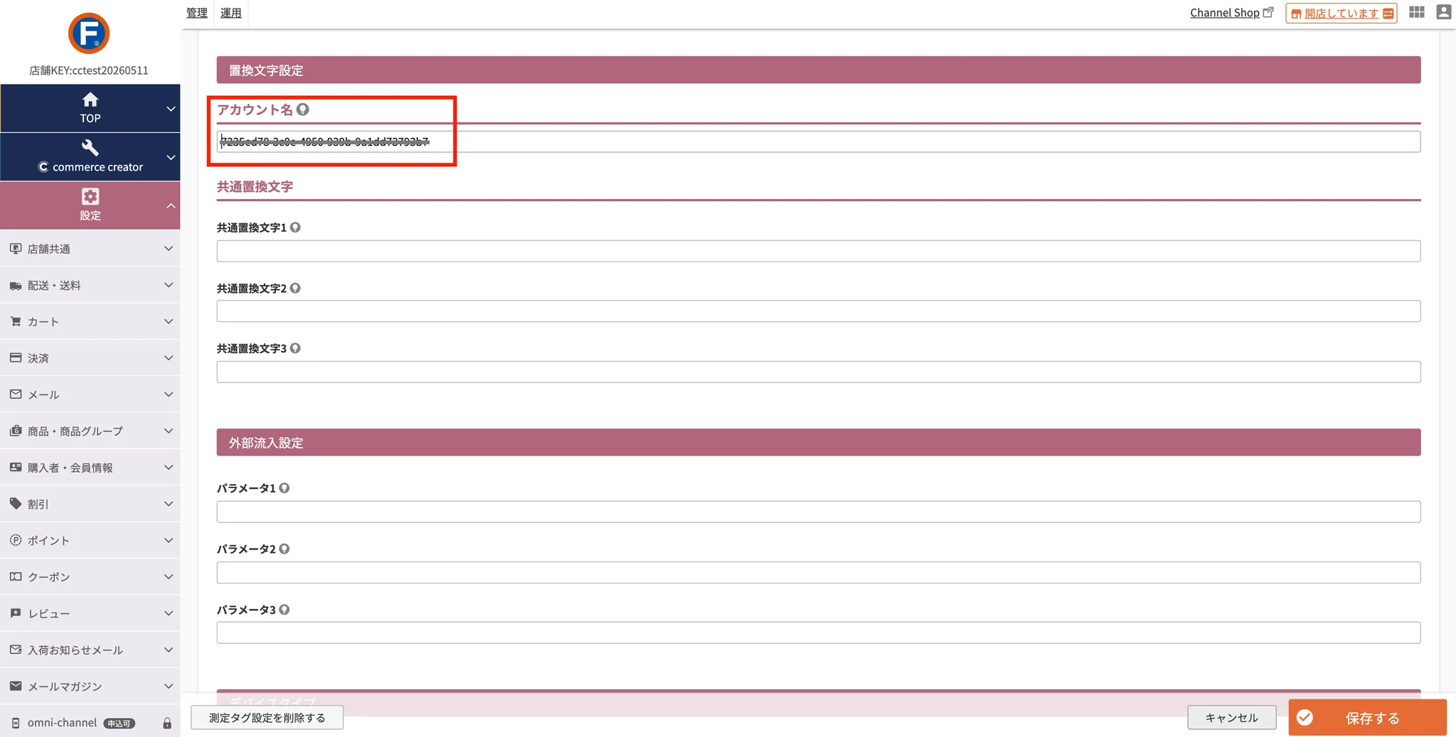 、設定名に「チャネルトーク_テスト」などご入力ください!