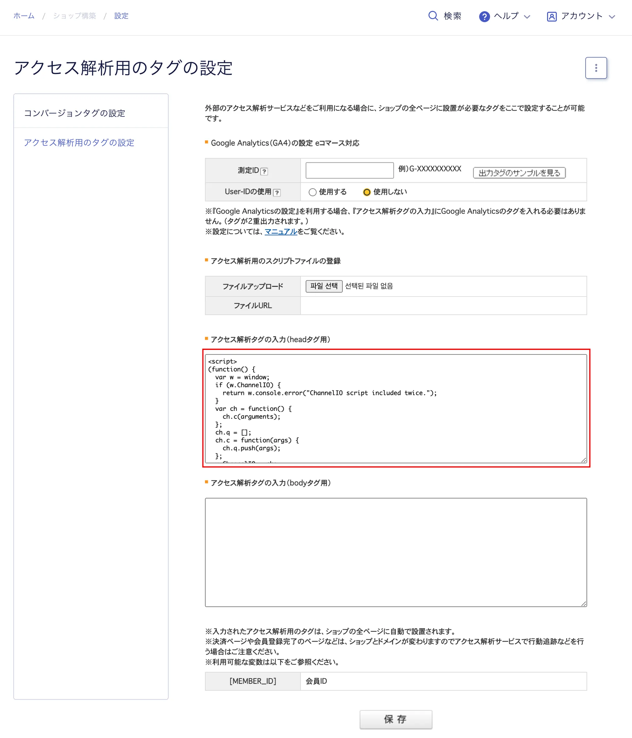 5. SEO・SNS・マーケティング - タグの設定