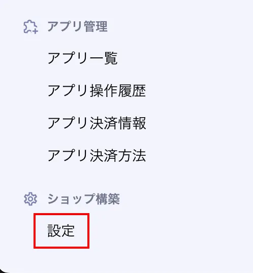 左のメニューでショップ構築 - 設定を押してください。